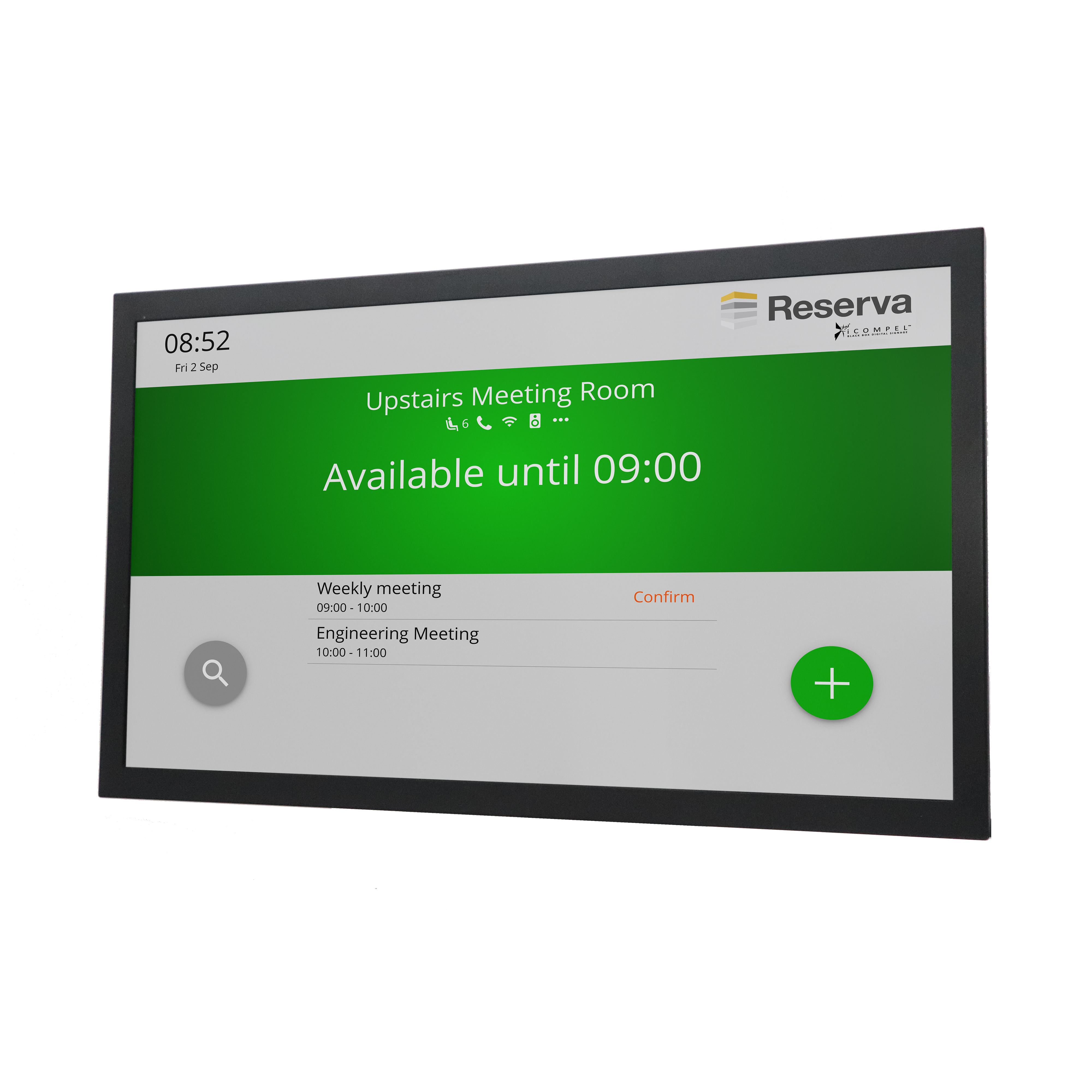 With advanced digital signage features, Reserva is much more than a room booking touchscreen. Inside each Reserva is an iCompel® player that allows users to integrate the room sign into their digital signage system. After integration, Reserva room signs can display important communications that benefit the user's business, such as internal messages and advertising. Reserva features multizone layout design and extensive playlist and schedule controls and users can also add their logo and a custom background to the display to boost branding. Important additional features include convenient remote device management and monitoring, superior performance, responsiveness and functionality. Reserva is also compatible with market-leading scheduling and timetable solutions for ease of integration.