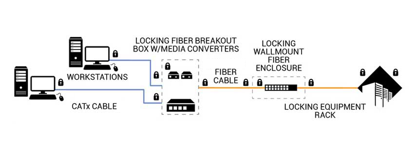 Fiber connectivity is the gold standard in secure networks. Extend data over secure fiberoptic connections. Ensure secure data transmissions up to the edge of your network inside the barracks or on the field with a variety of fiber network switches, copper-to-fiber media converters, secure fiberoptic cable (including colored fiberoptic cable and fiber patch cords), and active optical cable.
