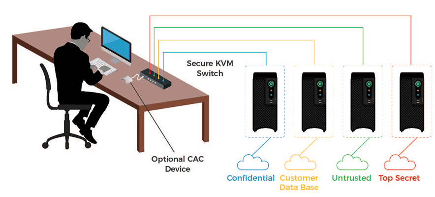 Secure Device Sharing, Fiber to the Desktop, and Control Room solutions products work together to mitigate security risks in your installation. Black Box helps you eliminate potential physical and cybersecurity threats and use forward-thinking technologies to stay protected for decades to come as your organization grows. We offer products that deliver real-time video with pixel-perfect resolution over secure fiber connections.
