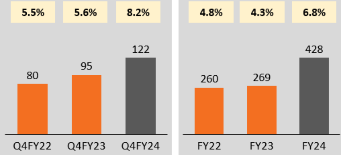 “For FY24, we have been exiting low value and long tail customers which led to a miss on our revenue guidance, however, we were able to achieve our EBITDA guidance and PAT was very close to lower end of the guided range. Our core operations have shown remarkable strength, with significant growth in key areas that underscore the robustness of our business model. The slight deviation from our forecast does not detract from the progress we have made and the solid foundation we have built. With robust pipeline and a strong order book, we are confident in the resilience of our business model. As each of our business segments gains momentum, our belief in delivering improved performance in the upcoming years is further reinforced.”