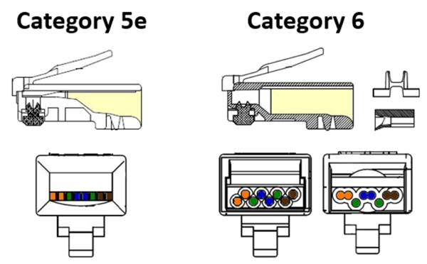 With that being said, there’s lots of technology inside the RJ-45 plug that may not get noticed. Here are some of the internal performance differences between Category 5e and Category 6 plugs.