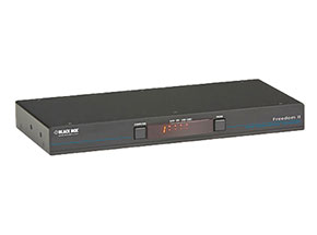 Control operations across four or eight computers by simply moving your mouse from screen to screen. The Black Box Freedom II KM (keyboard and mouse) switch saves desktop space and improves operator response time. Use Freedom as a stand-alone